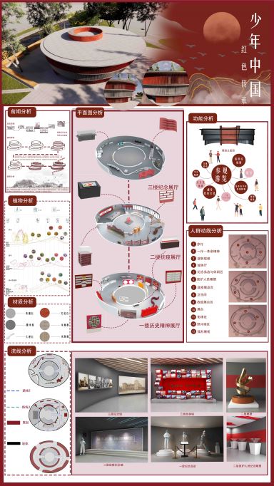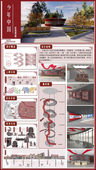 该项目位于武汉市这座英雄城市,交通便利,文化资源丰富。展馆内,分布三个区,依次处于一楼、二楼、三楼,从空间上,让观光者处在抗战时期体会其民族精神再到如今战疫时代的众志成城。同时也是向前发展的时间顺序,给人们更深刻的体会。每个时代都有自己的时代精神,中华儿女永远蓬勃向上。