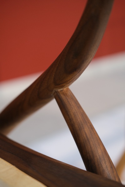 作品灵感都来自于中式圈椅,但是与传统中式圈椅的制作方法有所不同。首先在制作方法上完全是按照传统的榫卯结构来制作,但是在造型、座板以及腿部的工艺上加入了我的一些创新。传统的榫卯结构制作起来费时费力,我借鉴了现代的“直接插”的制作工艺,所以能在短时间内通过培训班的学习制作完成这把椅子。座板部分也做了一些创新,座板采用了天然的麻绳,传统的中式圈椅座板采用的是绷藤,制作工艺非常繁杂,而且成本非常高,造型上比较年轻化,一般的中式圈椅比较传统,适合老年人,我做的这把椅子更能被年轻人所认可。 |
