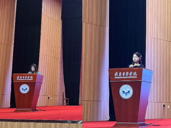 为增强新生的认同感与归属感,学院特别安排了优秀学生代表动画2302曹文琪和优秀新生代表视觉传达(中际)2501鲁诗韵发言。他们分享了在校学习生活的经验体会以及对未来的憧憬,展现了艺设学子的良好精神风貌,引起了在场新生的广泛共鸣。