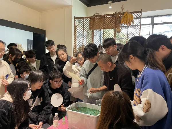 特色3:拓展产赛融通的社会实践活动。带领学生参观省内知名博物馆(湖北省博物馆、云梦博物馆、随州博物馆)、非遗研学基地(枣阳粗布研学基地、江夏“字言纸语”研学基地、赤壁古战场),结合优质学科竞赛项目(挑战杯、中国国际大学生创新大赛、米兰设计周等)、企业命题开展项目制实践教学(文化创意设计)。积极参与湖北省非遗文化节、非遗嘉年华、文创售卖等社会实践教学活动,增强文化自信。