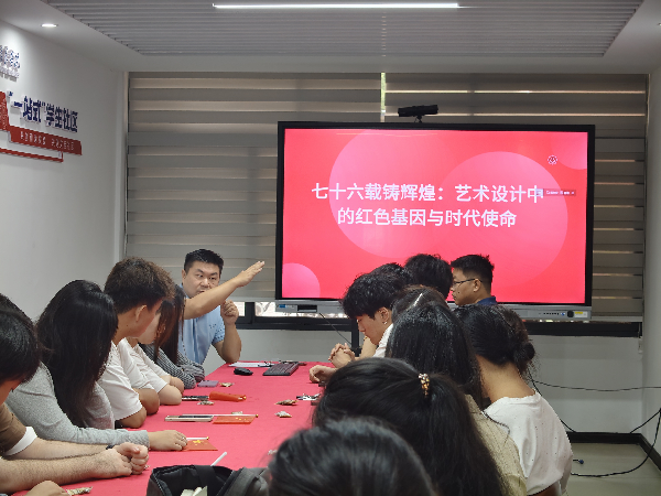 金秋送爽,丹桂飘香。为庆祝中华人民共和国成立76周年,弘扬爱国主义精神,丰富艺设在校学子的精神文化生活,艺术设计学院于10月1日上午8:15在中区一站式会议室,精心策划并组织开展了“七十六载铸辉煌:艺术设计中的红色基因与时代使命”为主题的教育活动,本次活动由院党总支书记吴世杰主持,学生支部在校成员参与。