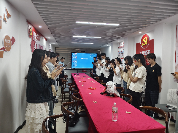随后,大家集体观看《艺术设计学院祝贺祖国76周年华诞》原创视频和朗诵《我的祖国》。伴随着悠扬的旋律,手持小国旗,齐声朗诵,激昂的旋律传递出对祖国母亲的深情祝福,也展现出全体成员团结奋进、昂扬向上的精神风貌。最后,吴世杰指出,全体成员要将活动成效延伸至日常学习生活,持续发挥先锋模范作用,始终牢记“亮身份、勇担当、作表率”,把活动中凝聚的爱国热忱和奋斗精神,切实转化为实际行动,为实现中华民族伟大复兴贡献自己的力量。