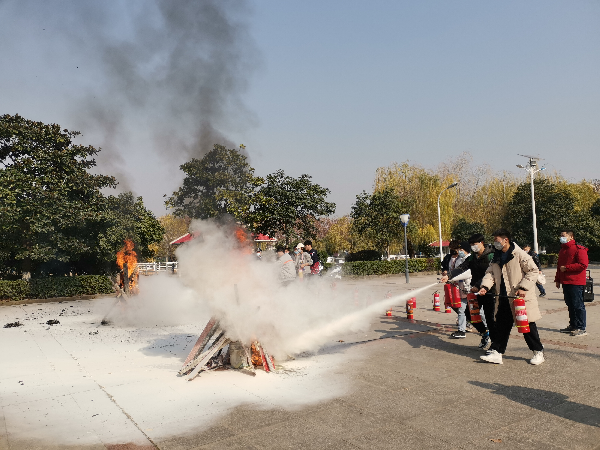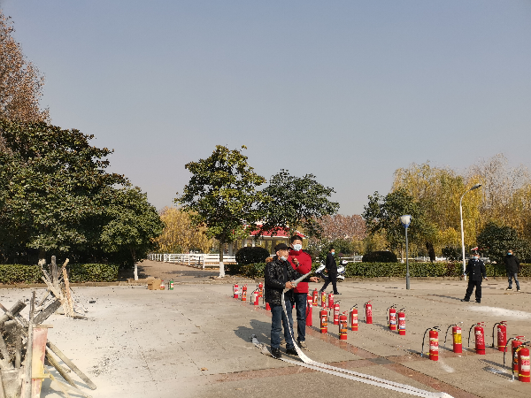 保卫处张智松老师和黄银章老师分别同学们讲解了逃生知识和消防灭火知识,强调火灾发生时,要第一时间拨打火警电话或校园报警电话,明确说明火灾发生地点,并详细演示了灭火器和消防栓的使用方法,同学们积极参与并在老师指导下进行了实操演示。