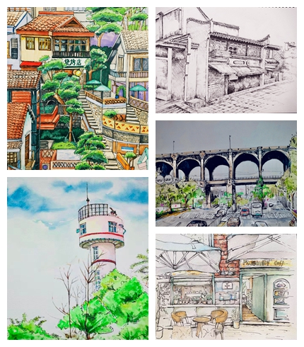 环境设计专业的学生们在老师的带领下完成了武汉美术馆、湖北美术馆、中国建筑科技馆等地点的写生。同学们对大家们的画风进行了学习,同时了解了多种绘画作品的表达方式,认识到中国建筑的发展形态,能够更加生动的理解建筑结构及空间。