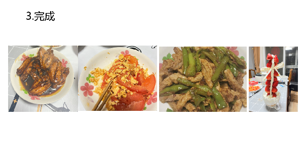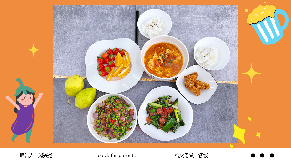 在劳动篇主题活动中,学院以“给父母做一餐饭”为主题进行策划,鼓励学生参与家庭事务,积极为家庭生活贡献一份力量。这项活动实现了非常好的家校互动效果。环设2102余培琛、视传2004熊兴尧、视传2004刘梅娟获得一等奖;视传2102聂奕纯、视传2105卢晓宇、产品1901周子萱、设计类2203李嘉悦、设计类2205涂煌文获得二等奖;设计类2208张盼盼获得三等奖。熊兴尧反馈参加此次劳动类活动自己感触很深,自己体会到了父母的不容易,知道了自己应该更加自立,努力帮父母多减轻一些负担。周子萱很高兴自己迈出了完整一步,参加这次活动从挑选食材到每一道菜做出来足足忙活了几个小时,爸爸妈妈品尝了自己精心烹饪的饭菜觉得特别欣慰。刘梅娟表示参加这次活动有一次拉近了自己与家人间的距离,为父母做一餐饭让自己更加明白父母在家庭中承担的重要角色,更加了解到了父母的忙碌与辛苦,表示会更加努力回报父母。