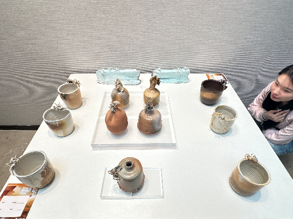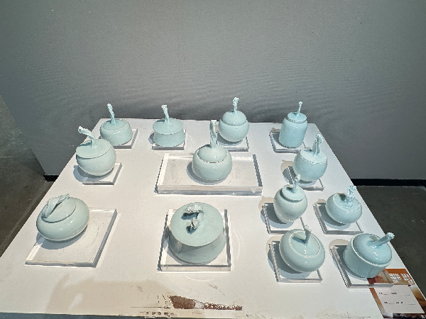 在观展的过程中,展馆负责人细心地跟同学们讲解了陶瓷艺术的由来,同时,也讲解了陶瓷艺术的创新方法,可以使不同的材质与陶瓷相结合。讲到艺术设计学院胡雨霞院长的作品“入戏一器”时,同学们不禁感受到作品呈现了“动静结合”的乐趣,并且胡院长的作品“蚁域“也生动的呈现在同学们的面前,使大家感觉到陶瓷制作之精妙。此外,还有艺术设计学院李涛、李亚文老师作品,产品21级学生李思施同学的作品参展。