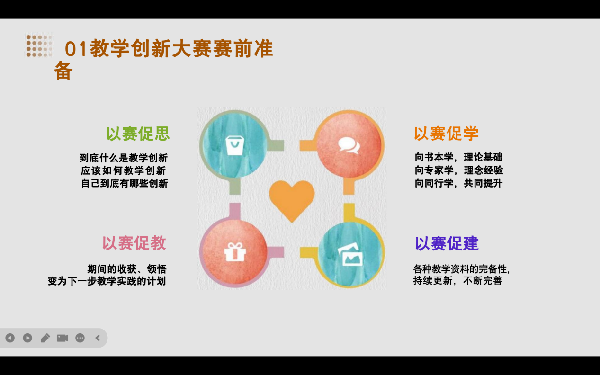 讲座伊始,主讲人秦杨老师首先聚焦于教学创新大赛的赛前准备。她强调,全国高校教师教学创新大赛,不是“讲课比赛”、授课技能竞赛、多媒体课件竞赛,而是创新教学。深入理解大赛规则是参赛的第一步,通过仔细阅读官方指南、分析往年的获奖案例和评审反馈,参赛者可以精准把握评审标准和要点。