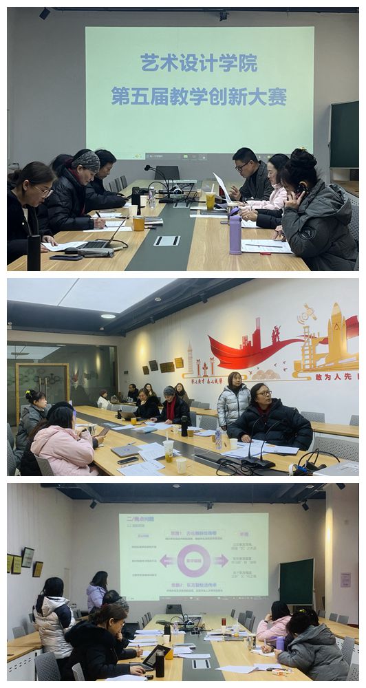 2024年12月24日,艺术设计学院成功举办了第五届教学创新大赛院赛评审会。本次评审会由艺术设计学院肖巍副院长主持,评审专家团队由校外知名专家孙明海教授、袁丰教授和院内学术骨干组成,旨在深入推动学院教学模式创新、提升课堂教学质量,为教师提供了一个展示教学成果与创新理念的平台。