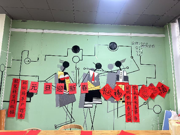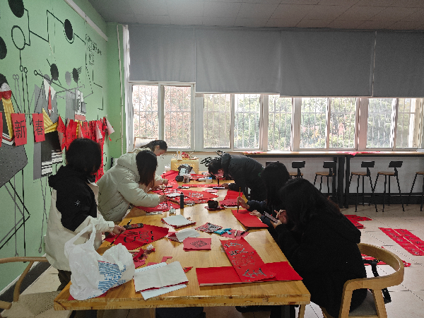 最后,学生会的同学们还为学院专业办公室贴上了特色的“福”字,寓意着新的一年福气盈门,福运满满。