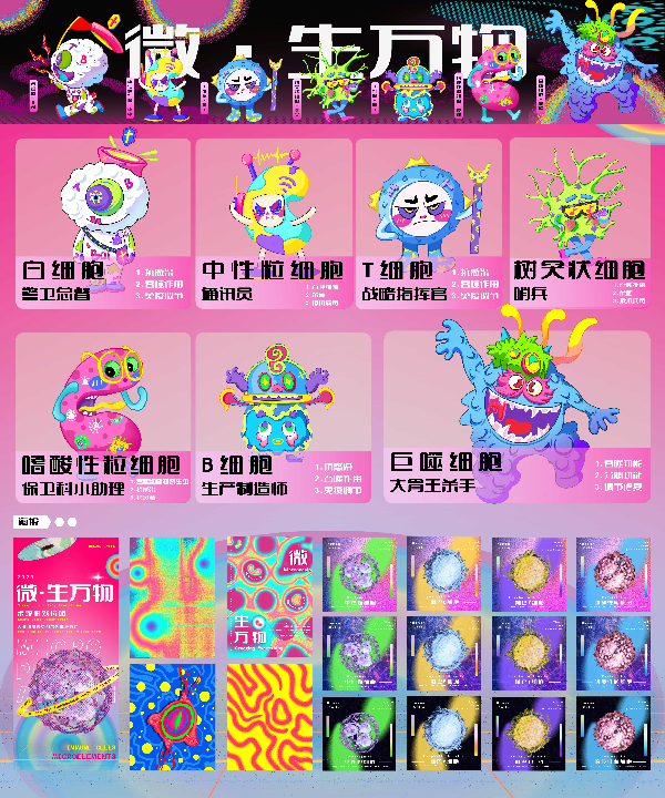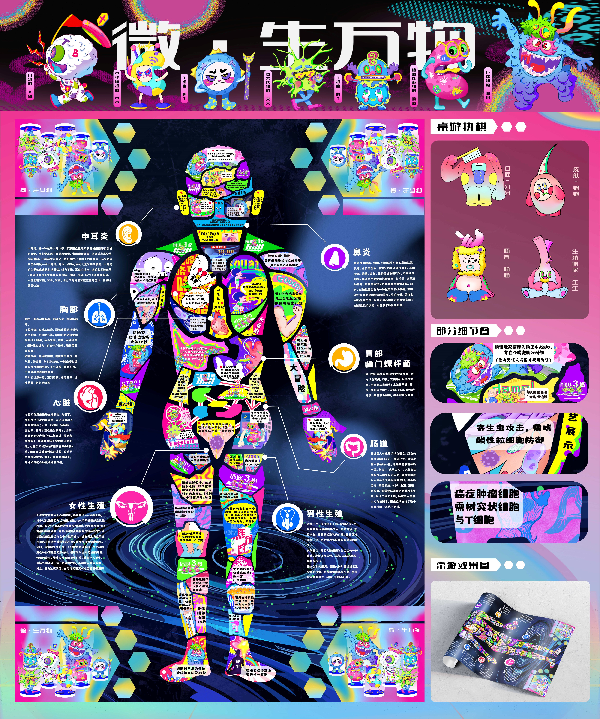 将人体细胞微观视角下的视觉元素创新设计,呈现出以科普导向的趣味性桌游为主的文创产品,使细胞图形与特点融合为可接受度高的设计,旨在激发人们对人体细胞知识的兴趣,引导人们更深层次地了解微观世界。