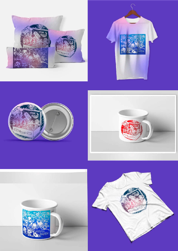 作品以泡泡玛特作为设计主题和对象,创意构思点在于结合盲盒玩法,在构图上呈现出打开盒子,出现了多个泡泡玛特代表IP形象,不同的IP形象带给人无穷的奇妙和惊喜感,同时美式复古的视觉风格和画面质感的表现,也是现在潮流风向的代表。