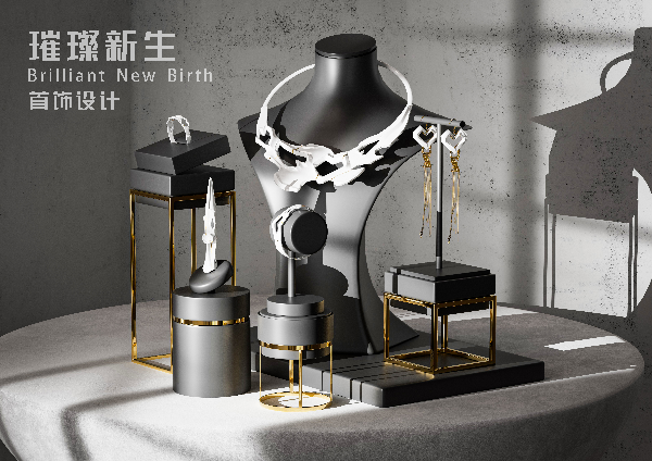 本产品是一套以金缮工艺为灵感,聚焦残障人士的义指系列首饰设计。以“再生”为理念,将传统金缮工艺创新融入首饰;采用废弃陶瓷为原料,经金缮装饰焕发新生;结合现代设计美学,打造兼具文化底蕴与时尚感的环保首饰,既修补残指肉体缺憾,更给予佩戴者心理慰藉,实现身心的全面新生。