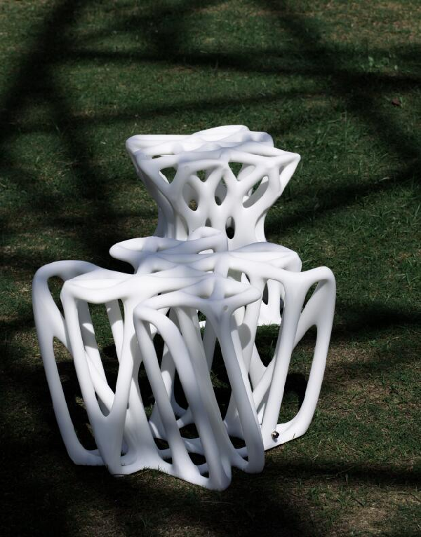 “生长”系列家具是基于参数化设计手法的交互式有机形态家具,通过参数化工具对自然界中的有机形态进行仿生设计,结合灯光交互增加使用时的参与感与趣味性。“生长”系列家具的灯光交互与使用者的状态相对应,三件家具分别展现出“呼吸”和“循环”两种灯光交互。坐具形态来源于植物生长过程,类似树枝分叉的自然形态展现着生命的力量。每一件坐具的基本线条都来自计算机程序,通过参数化工具“生长”出的线条可产生无尽的变化,无限生长。 |