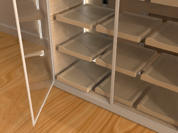 这款智能鞋柜主要关注老年人用户的需求,利用导轨完成上位取鞋下位放鞋的设计,避免用户弯腰更换鞋子照顾了老年人的健康和安全。同时,该鞋柜拥有智能杀菌技术,保证鞋子的清洁卫生,避免细菌滋生。此外,该智能鞋柜还配备有电子屏幕方便老年人选取所需的鞋子。整体方案必将为老年人群提供更加便利安全的使用体验。