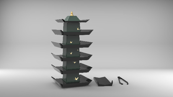 本设计是将传统工艺融入茶具设计中,在茶具造型设计上提取古建筑元素,色彩上既体现传统髹漆工艺的特色,又不失现代感。突破传统茶具制作材料,利用纸胎结合髹饰技法进行茶具的制作。将髹漆工艺运用到茶具设计中,体现出大漆茶具特有的韵味。