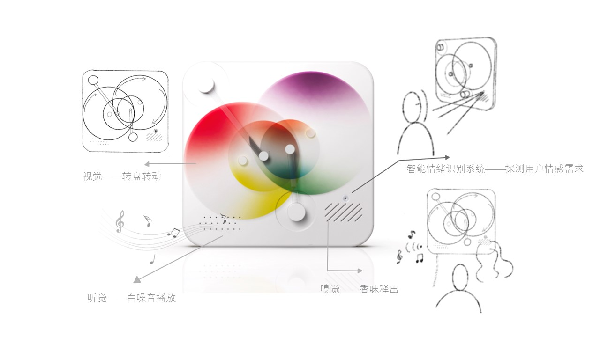 本产品是一款家居场景下使用的智能疗愈灯具,旨在通过智能情绪识别系统,探测用户的情感需求,并以交互形式体验多感官的情绪治愈。