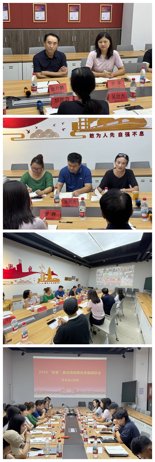 10月10日下午,校长助理张开鹏,校团委书记罗萍、校团委袁娇老师莅临艺术设计学院会议室,开展2026年“小挑”“国创赛”重点参赛项目专项调研工作。艺术设计学院院长胡雨霞主持,党总支书记吴世杰、副院长肖巍及各系主任、各专业负责人、教师代表参与调研会。